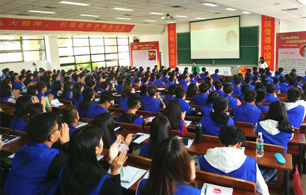 学校团委负责人、老师,各学院团干部代表以及全体2017级团支部书记等300余人参加宣讲会。