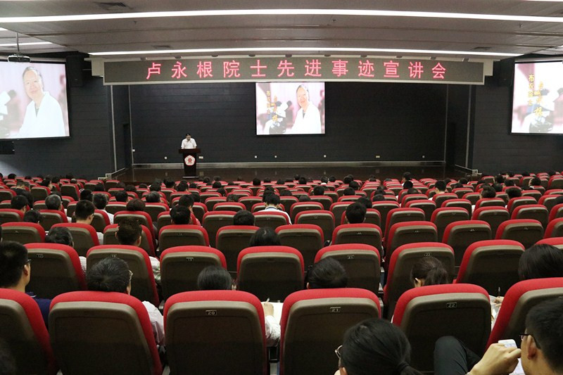 卢永根是中共党员、中国科学院院士、水稻遗传学家。曾任华南农业大学校长,现任华南农业大学教授、博士生导师。他长期奋斗在科学研究和高等农业教育第一线,为农业和教育发展作出了卓越贡献。宣讲团分别结合亲身经历,深情回顾了卢永根爱国爱党、献身教育事业的模范行为和人格风范。他信仰坚定,他所在的作物遗传育种系党支部有一个严格规定,所有党员每月按时缴交现金党费、过组织生活。2017年3月住院后,“卢永根院士病房临时党支部”成立,每月支部成员还把党和国家重要方针政策、华农科研最新动态带到他的病床前。他胸怀国家,他放弃国外优越的工作环境、生活条件回到祖国,他说“因为我是中国人,祖国需要我!”借助国外学习的知识和经验,卢永根大刀阔斧改革, 打开了华农人才培养的新格局,推动了华农的跨越发展。作为87岁的中国科学院院士,一生致力于水稻的遗传育种研究,并取得多项理论和应用重大创新。他无数次说,作为一名共产党员,无论是一帆风顺的日子,还是身处逆境的时刻,始终坚信,要把一生献给祖国。他忠于教育,2017年3月,他和夫人徐雪宾教授一起将毕生积蓄8809446.44元全部捐赠给华南农业大学,设立“卢永根•徐雪宾教育基金”,用于奖励华南农业大学农学院品学兼优的贫困本科生和研究生,奖励农学院忠诚于教学科研的教师,以及资助农学院邀请农业领域国内外著名科学家来校讲座。他生动典型的先进事迹为教师们树立了榜样。
