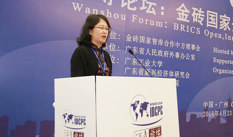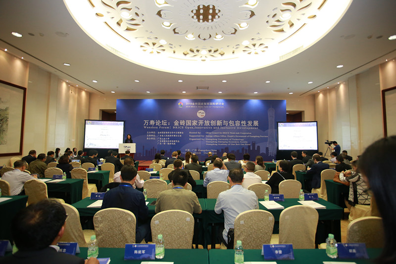 本网讯 4月23日,金砖国家智库国际研讨会暨“万寿论坛”在广州白云国际会议中心举行。此次会议由金砖国家智库合作中方理事会主办,广东省人民政府外事办公室支持,环亚手机版登录入口、广东省新兴经济体研究会、广东一带一路研究院承办,研讨会的主题是“金砖国家开放创新与包容性发展”。来自巴西应用经济研究所、俄罗斯金砖研究国家委员会、印度观察家研究基金会、南非金砖智库,以及中共中央对外联络部研究室、国家行政学院、中国社会科学院、致公党广东省委、广东省人民政府外事办公室、环亚手机版登录入口、广东省新兴经济体研究会等智库及高等院校科研院所的领导、专家、学者及企业界代表共计120余人参加了本次研讨会。