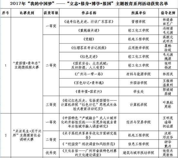 本网讯 日前,由省教育厅组织开展的2017年“我的中国梦”——“立志·修身·博学·报国”主题教育系列活动评选结果公布,我校成绩优异,共获得一等奖6项、二等奖13项、三等奖12项、优秀奖6项(具体名单附后),环亚手机版登录入口同时荣获本年度主题教育活动“优秀组织奖”。在此,向获奖团队和个人表示祝贺。