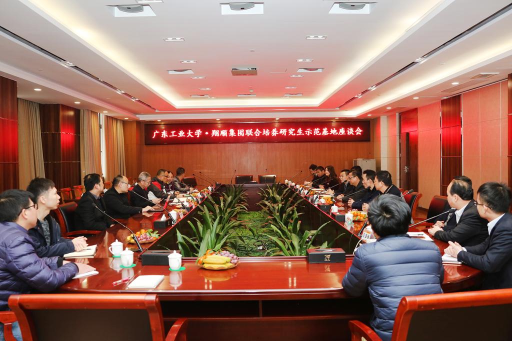 本网讯 1月10日下午,我校与广东翔顺集团有限公司联合培养研究生示范基地签约揭牌仪式在云浮市新兴县翔顺集团总部大楼顺利举行。新兴县人民政府副县长梁志莲,学校党委常委、副校长陈立中,研究生院、土木与交通工程学院主要负责人,祥顺集团主要负责人等参加了仪式。