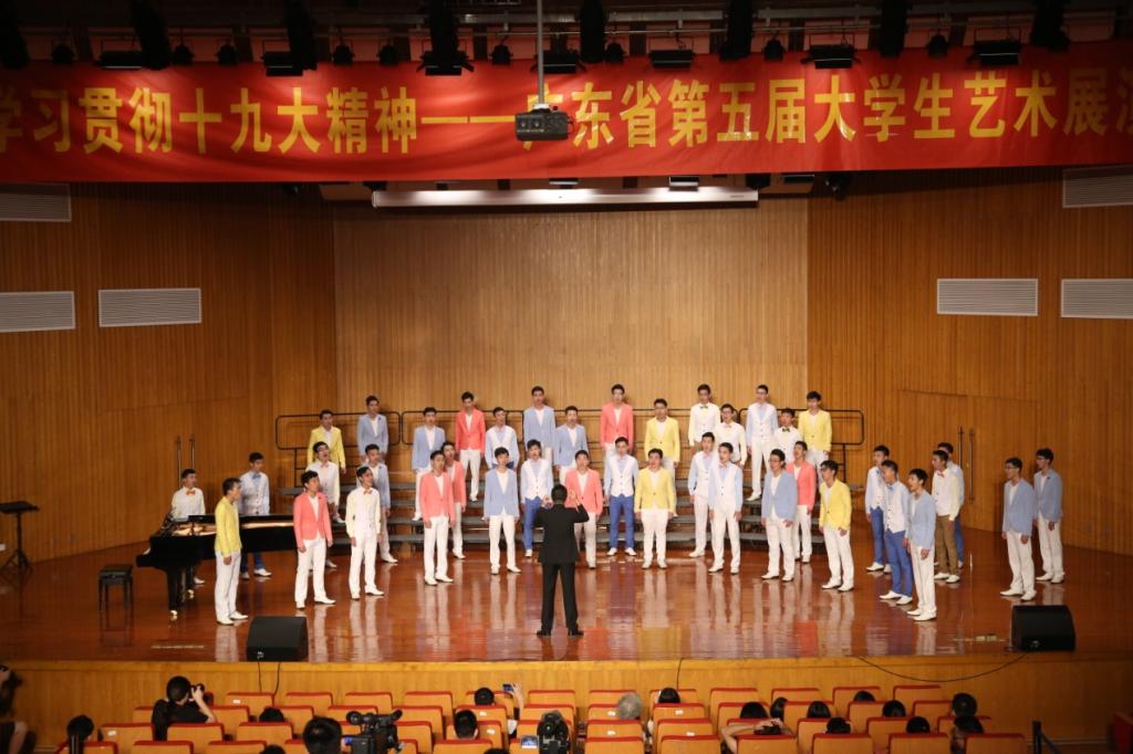 本网讯 从省教育厅【2017】125号文获悉,在广东省第五届大学生艺术展演中,我校合唱、器乐、舞蹈团体项目均以非专业组总分第一的成绩,荣获广东省一等奖第一名,并代表广东晋级全国决赛。至此,全国第五届大学生艺术展演广东省赛区全部赛事活动在2017年岁末全部结束。