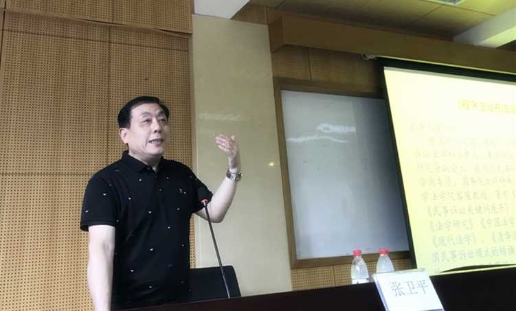 本网讯 5月23日下午,中国民事诉讼法学研究会会长、中国检察学研究会副会长、最高人民法院法官学院客聘教授、最高人民检察院咨询委员、清华大学法学院教授、博士生导师张卫平应邀来我校作了题为“程序法治在法治构建中的地位”的专题讲座。