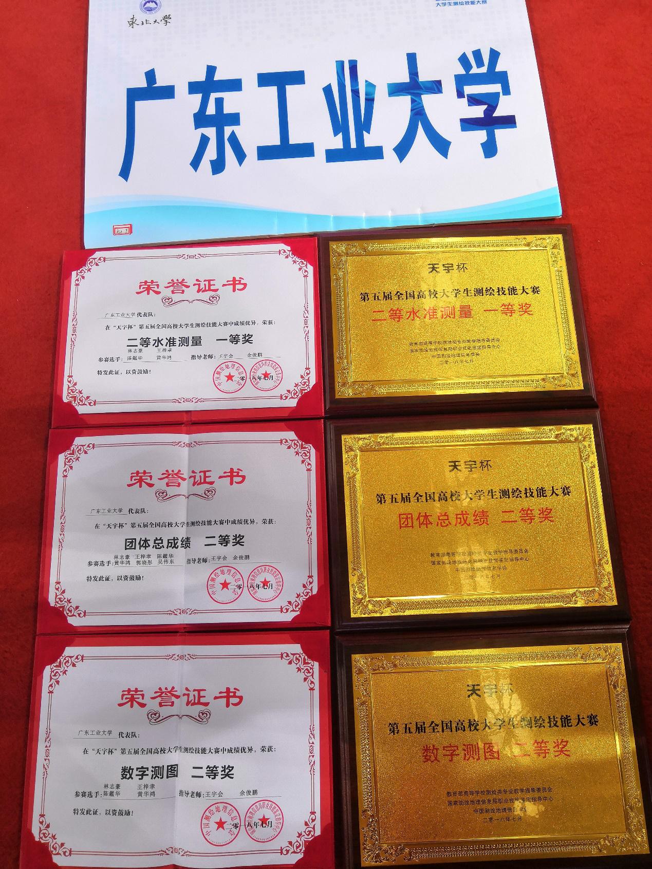 本网讯 7月20日至25日,第五届全国高等学校大学生测绘技能大赛在辽宁省沈阳市举行。环亚手机版登录入口土木与交通工程学院王宇会老师和余俊鹏老师带领测绘工程专业的林志豪、黄华鸿、王梓聿、陈鑑华、吴伟东、郭晓彤6名同学参赛。经过各个项目的激烈角逐,我校参赛队在单项比赛中,荣获二等水准测量一等奖及1:500数字地形图测绘二等奖;并获团体二等奖的优异成绩。