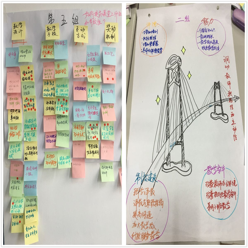 在团队学习环节,研修班以小组为单位,组织成员进行专题研讨和分工合作,以此促进不同学科领域教师的交流与融合。从“小组自由讨论”到“结构化研讨”,再到“成果展示汇报”等环节,各小组学员都积极参与到团队讨论活动当中,围绕如何改进和提升教育教学水平等话题进行深入的研讨,并相互分享了学习心得和汇报了学习成果。