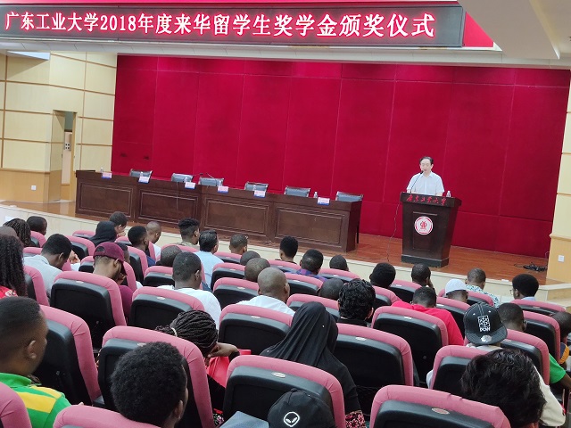 本网讯 5月8日上午,我校2018年度来粤留学生奖学金颁奖仪式暨学术报告会在东风路校区图书馆大楼8楼报告厅举行。广东省教育厅交流处处长李金俊,环亚手机版登录入口副校长张力,学校教务处、学生工作处、保卫处等负责人出席,国际文化教育中心全体教师以及200多名留学生参加了此次活动。
