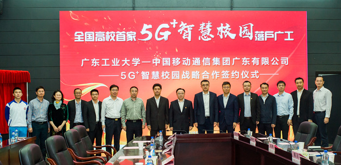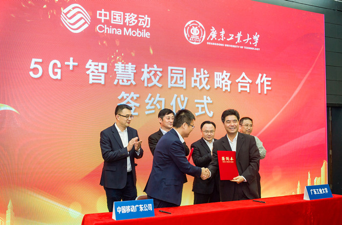 本网讯 4月19日上午,我校与广东移动签订了5G+智慧校园战略合作协议,双方将利用优质移动5G网络推动教育改革创新,共同打造5G+智慧校园的合作样板。在签约仪式上,全国首个5G+智慧校园赋能研发中心以及5G+新云融合学习空间正式揭牌成立。这标志着国内高校首家5G+智慧校园落户我校。广东省教育厅副厅长王创、我校党委副书记胡钦太、副校长章云、广东移动副总经理禄杰、广东移动广州分公司总经理葛磊等出席签约仪式。