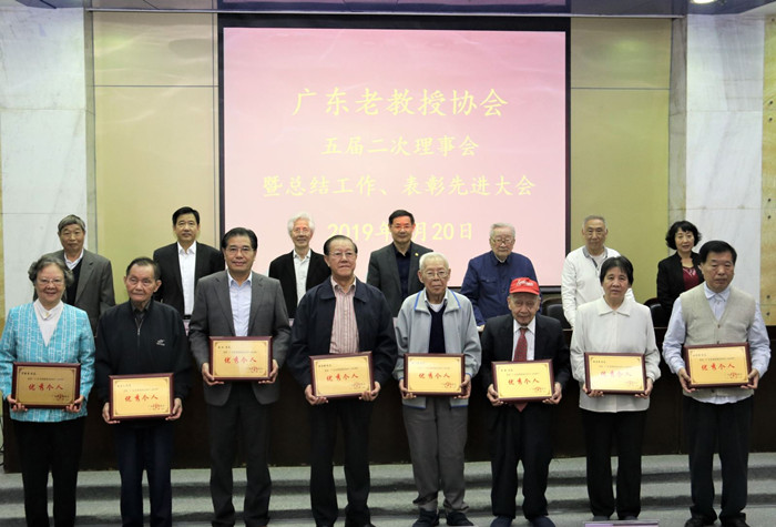 本网讯 3月20日,广东老教授协会五届二次理事会暨总结工作、表彰先进大会在华南理工大学逸夫人文馆二楼报告厅召开,我校老教授协会一行6人出席了大会。会上,我校黎鑫教授和张启人教授作为“广东老教授协会2017-2018年优秀个人”受到了表彰。