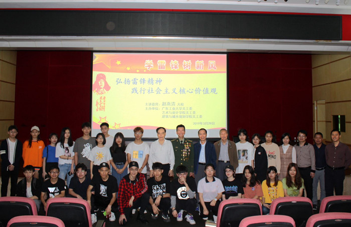 本网讯 3月29日下午,东风路校区图书馆报八楼告厅内,校关工委、艺术与设计学院关工委、建筑与城市规划学院关工委联合举办学雷锋报告会,邀请对越自卫反击战亲历者、全军学雷锋模范、一级英模、武警126师原副政委、校关工委•老教授报告团特邀赵燕清大校,到校为学生作报告。赵燕清在战争中曾两次负伤,多次立功,是党的十四大代表;其家庭曾被部队、广州市及全国妇联授予“五好家庭”、“文明家庭”等称号,2014年被评为“广州市十大最美家庭”。赵燕清以《弘扬雷锋精神 践行社会主义核心价值观》为题,紧扣社会主义核心价值观的内容,结合自己的学习经历、成长经历、参战经历和弘扬雷锋精神的亲身经历,深刻阐述了雷锋刻苦学习的“钉子”精神、爱岗敬业的“螺丝钉”精神、诚信友善的“傻子”精神和艰苦奋斗的“节约箱”精神,勉励青年大学生好好珍惜现在的大好时光,努力学习科学文化知识,发扬艰苦奋斗的优良作风,做社会主义核心价值观的践行者和传承者。最后,赵燕清以小提琴现场演奏《学习雷锋好榜样》和《唱支山歌给党听》的方式,结束这场生动而令人回味的报告。