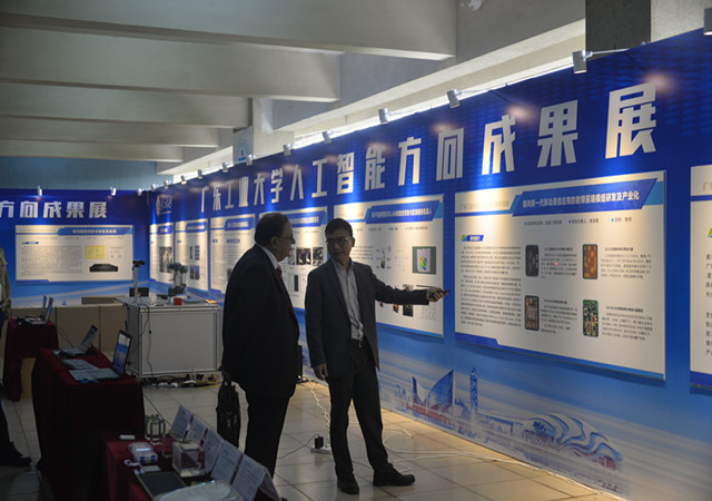 计算机学院院长程良伦向代表团成员介绍学院科技创新发展概况和重点研究领域,并就学院人工智能方向成果展整体做了介绍,分享了地方协同创新平台运营模式和学院依托地方协同创新平台开展校地合作支撑区域发展所取得的成功经验。