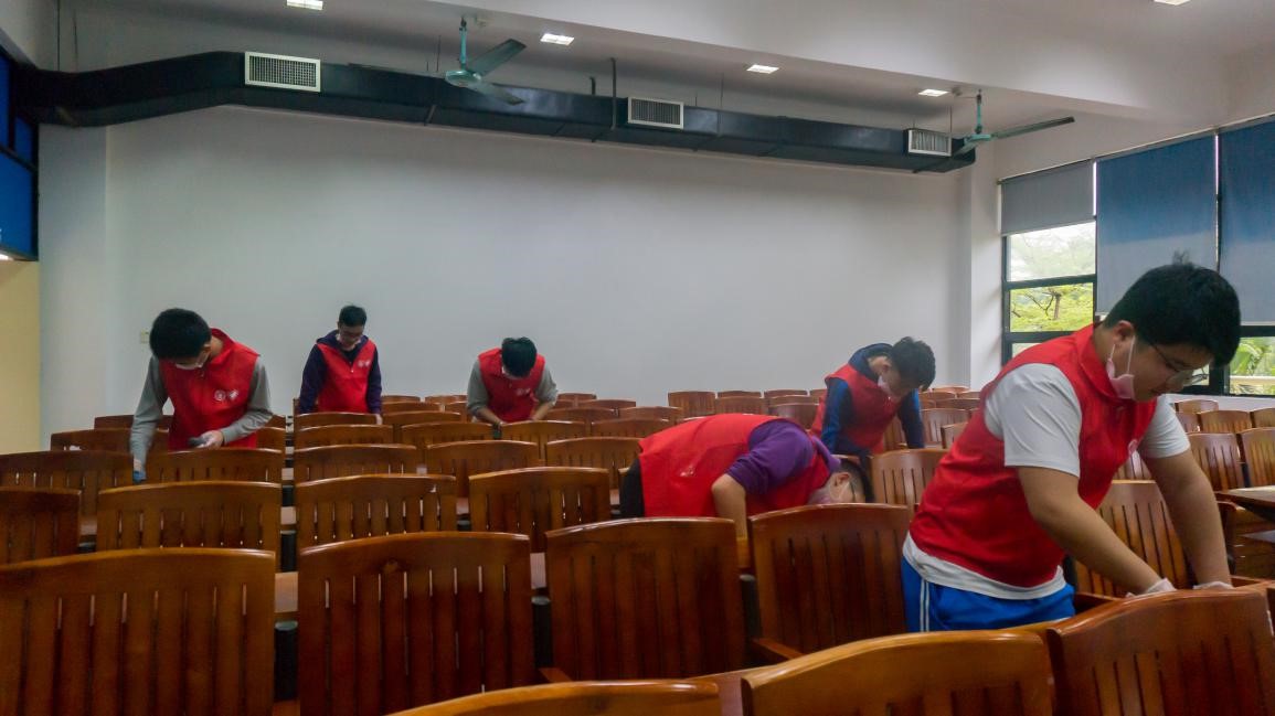 大学城校区清理活动现场 龙洞校区清理活动现场 东风路校区清理活动现场 番禺校区清理活动现场 志愿者清理课室现场