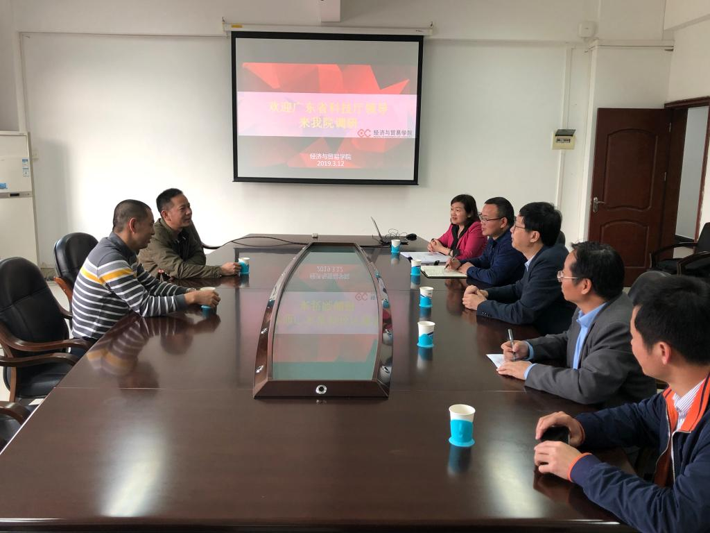 本网讯 3月12日下午,广东省科技厅副厅长郑海涛等一行来我校经济与贸易学院调研指导工作。副校长陈为民,经济与贸易学院主要负责人等参加了调研座谈会。