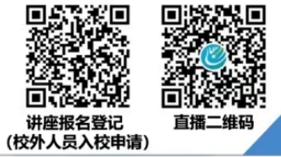 本次讲座采用线上线下结合形式进行,校外人员可扫右侧二维码申请入校参加现场讲座,校内学员凭签到及心得提交情况发放学术条(可跨学院)。