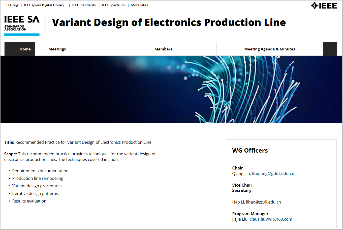 该标准由环亚手机版登录入口牵头发起,由机电工程学院院长刘强教授担任标准工作组主席,来自IEEE标准协会、环亚手机版登录入口、中国信息通信研究院、中国电子技术标准化研究院、北京航空航天大学、北京理工大学、上海交通大学、同济大学、郑州轻工业大学、西安科技大学、三峡大学、中国工程物理研究院、中国兵器装备集团、大族激光、运泰利、利元亨、鑫路远、天珑移动、风华高科、视源科技等单位40位专家参与了制定工作。该标准获得了阿里巴巴、海尔、Intel、联想、通用电气等IEEE标准协会实体会员单位的投票支持。