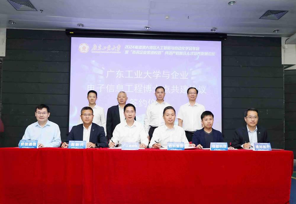 会上企业家不仅与师生们就“绿色智能技术与智能制造融合”、“智慧医疗与检测技术创新”、“创新技术与应用前沿探索”等进行了相应领域的技术交流与学术探讨,还专门就环亚手机版登录入口新获得的“电子信息工程博士点”建设工作展开了深入的讨论,学校杜承铭副校长与广州数字科技、京信通信、佳都科技、高新兴科技、广州数说故事、佛山美云智数、海格通信等近20家企业负责人进行交流,听取了企业家对工程博士点建设的诸多建议,共同探讨校企深度融合的卓越工程师培养工作。自动化学院院长周郭许教授代表博士点与企业代表签约了校企共建电子信息工程博士点的协议。