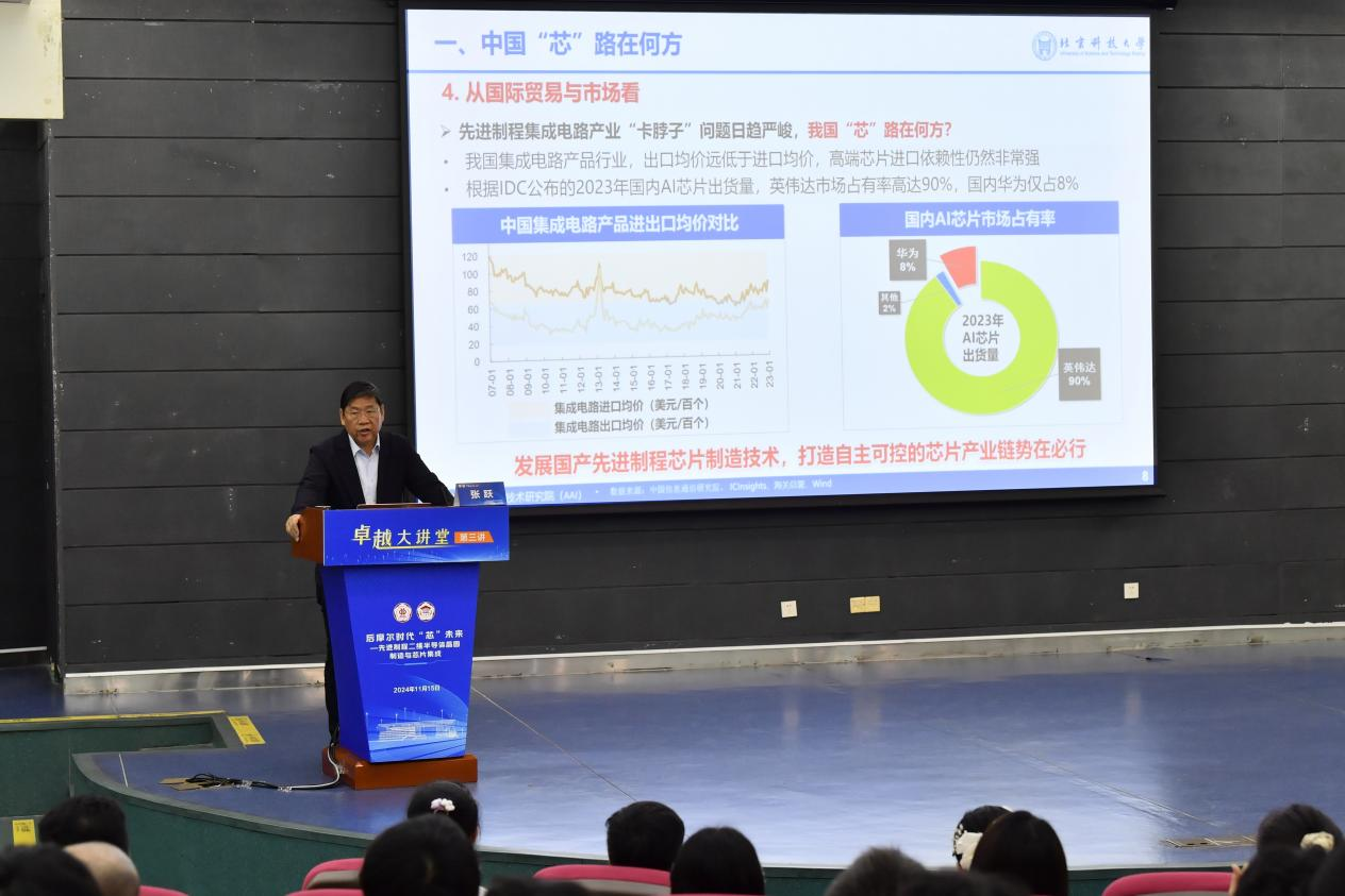 11月15日上午,中国科学院院士、发展中国家科学院院士、英国皇家化学会会士、北京科技大学张跃教授做客环亚手机版登录入口“卓越大讲堂”,围绕“后摩尔时代‘芯’未来--先进制程二维半导体晶圆制造与芯片集成”的主题,为300余名师生带来了一场精彩的学术报告。报告会由学校党委常委、副校长杜承铭主持,北京科技大学的嘉宾以及学校相关学院负责人及老师出席。