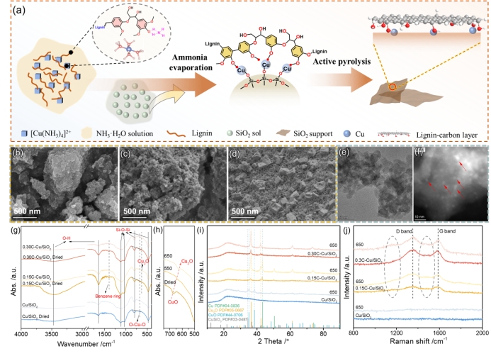图1 Cu/SiO2与C-Cu/SiO2催化剂制备过程示意与基本结构表征