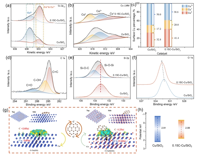 图2 Cu/SiO2与C-Cu/SiO2催化剂电子结构分析