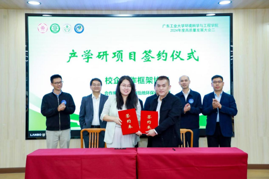 随后,在与会领导的见证下,环境科学与工程学院分别与米亚精密金属科技(东莞)有限公司、广州市怡地环保有限公司进行了产学研项目的签约仪式,进一步激发了现场企业家们开展产学研合作的热情与动力。