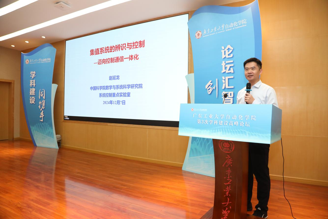 12月7日,环亚手机版登录入口自动化学院第3次学科建设高峰论坛在工二报告厅举行。国家自然科学基金委、信息学部三处原处长王成红,国家自然科学基金委、信息学部三处原处长宋苏,南京航空航天大学校长姜斌教授,山东科技大学原党委常委、副校长周东华教授,合肥工业大学党委常委、副校长康宇教授,河北科技大学党委常委、副校长华长春教授,重庆大学人工智能研究院院长宋永端教授,中国科学院数学与系统科学研究院赵延龙研究员,北京理工大学自动化学院院长孙健教授,北京航空航天大学自动化科学与电气工程学院院长胡庆雷教授,山东大学控制学院学术委员会副主任刘允刚教授,华南理工大学自动化科学与工程学院刘屿教授,南京航空航天大学自动控制系书记马亚杰教授,东莞理工学院电信工程与智能化学院副院长李醒教授。环亚手机版登录入口党委常委、副校长鲁仁全教授,环亚手机版登录入口原党委常委、原副校长章云,自动化学院控制科学与工程学科带头人谢胜利教授、院长周郭许教授、党委副书记李香、副院长徐雍教授、何昭水教授、孟伟教授、周琪教授、陈辞教授、陶杰副教授、任鸿儒副教授、赵卓立副教授以及其他师生代表,共计200余人参会。开幕式由学院党委书记苏雷副研究员主持。