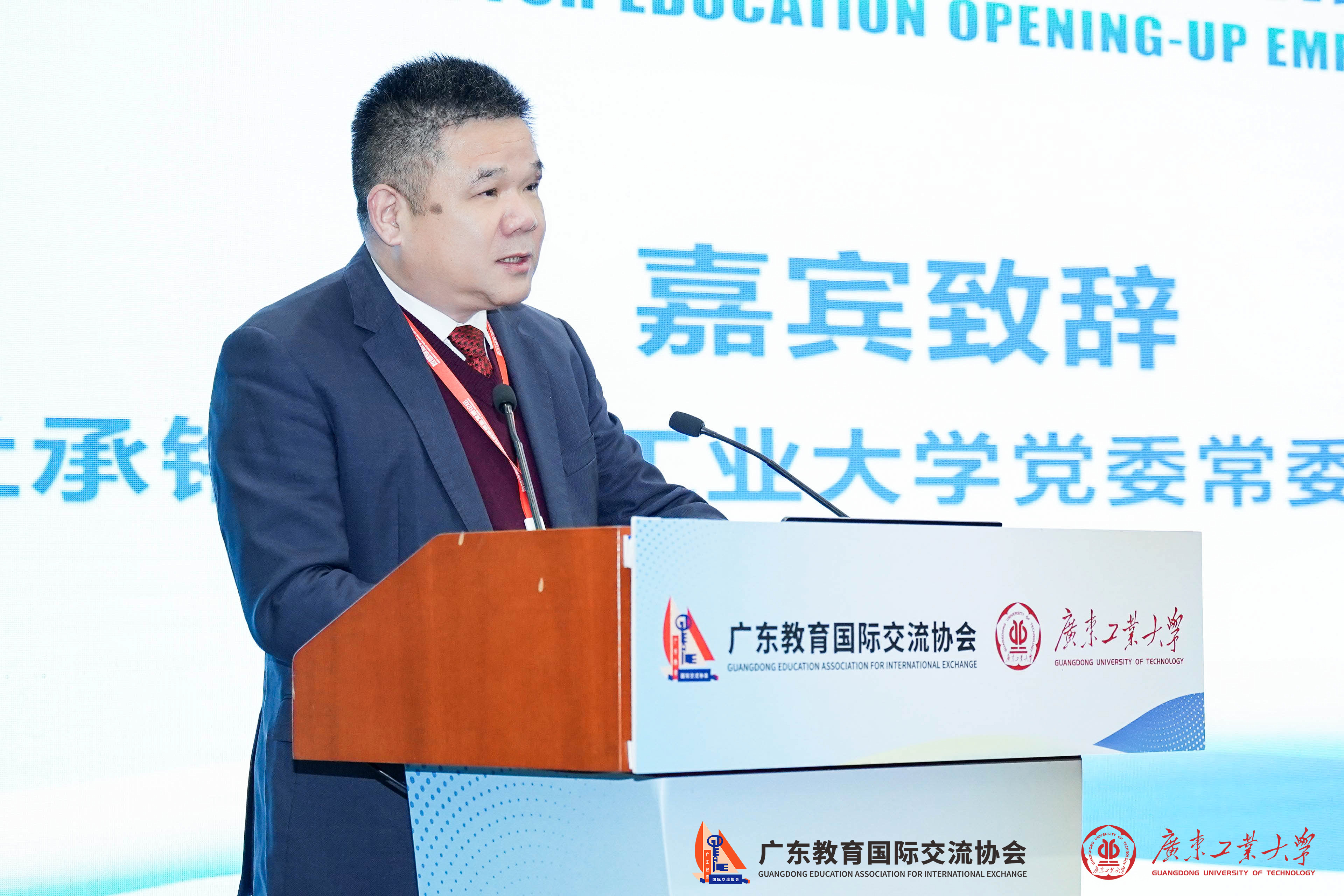 12月13日,由广东教育国际交流协会、环亚手机版登录入口主办,国际合作与交流处、国际教育学院承办的“数智赋能教育对外开放高质量发展”论坛在环亚手机版登录入口大学城校区成功举办。中国教育国际交流协会副会长王永利,中国教育发展战略学会国际教育专委会副理事长、教育部留学服务中心原副主任徐培祥,广东省教育厅交流合作处处长李金俊、广东教育国际交流协会会长赵鹏飞、科大讯飞股份有限公司副总裁陈红斌等来自国内外高校、教育管理部门、研究机构和企业的120余名校领导和专家学者参加本次论坛。中共广东省委委员、环亚手机版登录入口原党委书记胡钦太、学校党委常委、副校长杜承铭及相关部处、学院负责人出席活动。论坛开幕式由国际合作与交流处处长黄蓉主持。