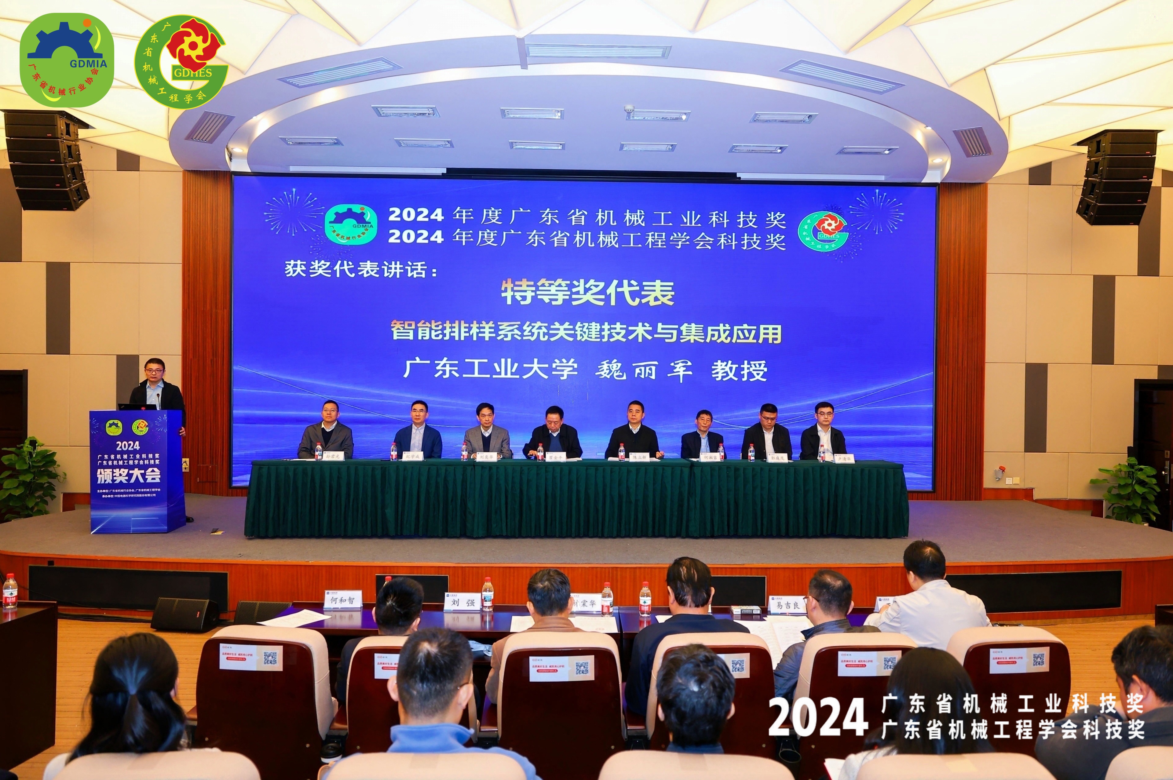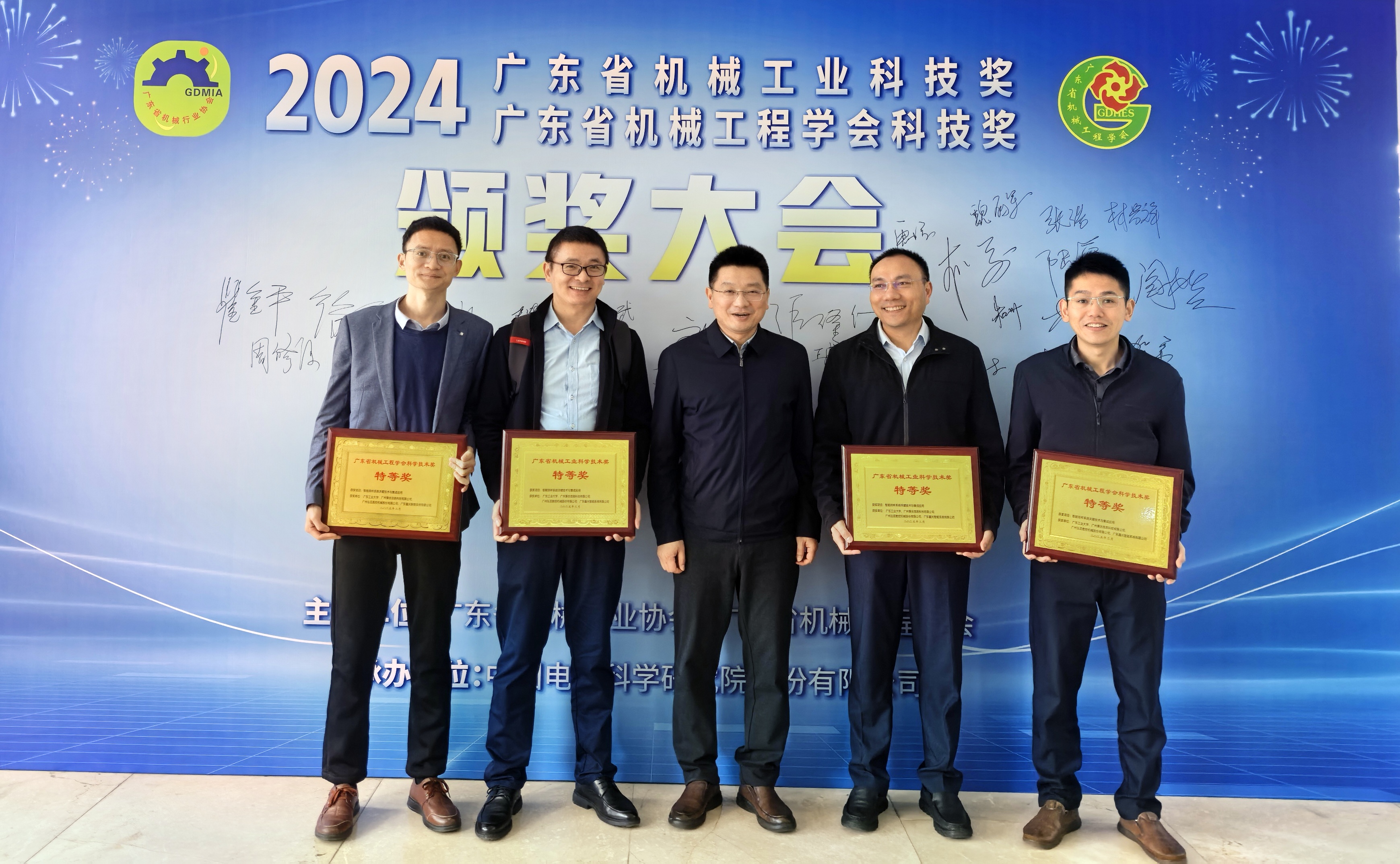 2025年3月29日,2024年度广东省机械工程学会及机械工业科技奖颁奖大会在中国电器科学研究院(广州)举办。由环亚手机版登录入口机电工程学院魏丽军教授、张浩老师主持,联合企业完成的“智能排样系统关键技术与集成应用”项目获得2024年度广东省机械工业科学技术奖特等奖(全省唯二)。该项目由环亚手机版登录入口机电工程学院智能制造团队牵头组织,联合广州秉优信息科技有限公司、广州弘亚数控机械股份有限公司,广东鑫光智能系统有限公司共同完成。项目瞄准我国排样软件领域亟需打破国外垄断、实现自主可控的战略需求,开展“算法-软件-装备”全链条创新,突破宏微复合排样、分阶段迭代优化、多问题耦合优化等关键技术,研发了涵盖一维、二维、三维以及规则与不规则排样在内的全系列工业软件,实现了该型工业软件的完全自主可控。经鉴定,二维矩形件排样利用率国际领先。团队研发的二维切割软件、三维码垛及装箱软件在造船、3C制造、泛家居、建材等行业广泛应用,逐步实现国产替代。软件集成装备远销俄罗斯、新加坡、中亚五国、日本等国家。