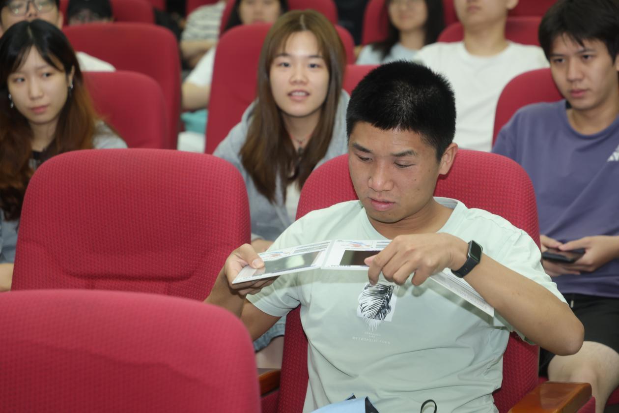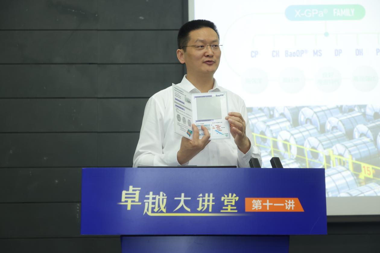 田董事长还为同学们带来了湛钢的高端钢材样品,分别有薄如蝉翼却韧性十足的手撕钢样品,以及具备高强度、轻量化、耐腐蚀特质的合金镀层钢材样品,同学们饶有兴趣地仔细欣赏。