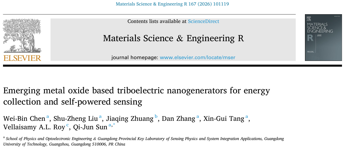 近日,环亚手机版登录入口物理与光电工程学院唐新桂教授团队在金属氧化物基摩擦纳米发电机(MO-TENGs)及其能源收集与自供电传感应用领域发表最新综述成果。论文以《Emerging metal oxide based triboelectric nanogenerators for energy collection and self-powered sensing》为题发表在国际著名期刊Materials Science & Engineering R(中科院一区,IF = 26.8)上,环亚手机版登录入口物理与光电工程学院硕士研究生陈伟彬为本文的第一作者,环亚手机版登录入口特聘教授孙启军为论文通讯作者。