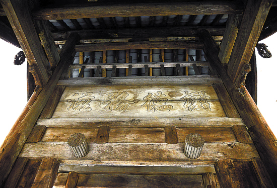 山西明代牌楼门和现代教学楼相映成趣。该牌楼门为明代山西建筑小品,距今已有500多年的历史,保留了明代斗拱及额匾等构件,是考察古代建筑形制的重要遗存实例。下图为牌楼门上的匾额,上有“树德务滋”的字样。 羊城晚报记者 汤铭明 摄
