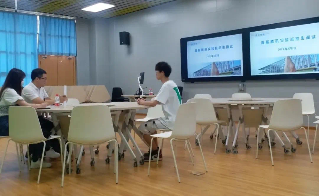 广工腾班采取2+2培养模式,前2年在原专业学习,第四学期期中启动选拔,择优录取,独立编班,后2年定制培养方案和课程体系,由学校优秀教师和腾讯资深工程师组建的教学团队,定制特色实践课程,提升学生专业技能。教学内容源自企业真实案例,教学素材源自企业真实技术,同学们在专业学习中仿若置身企业情景,体验“真实项目进入课堂”“真实技能嵌入课堂”“真实技术融入课本”等特色培养新模式。
