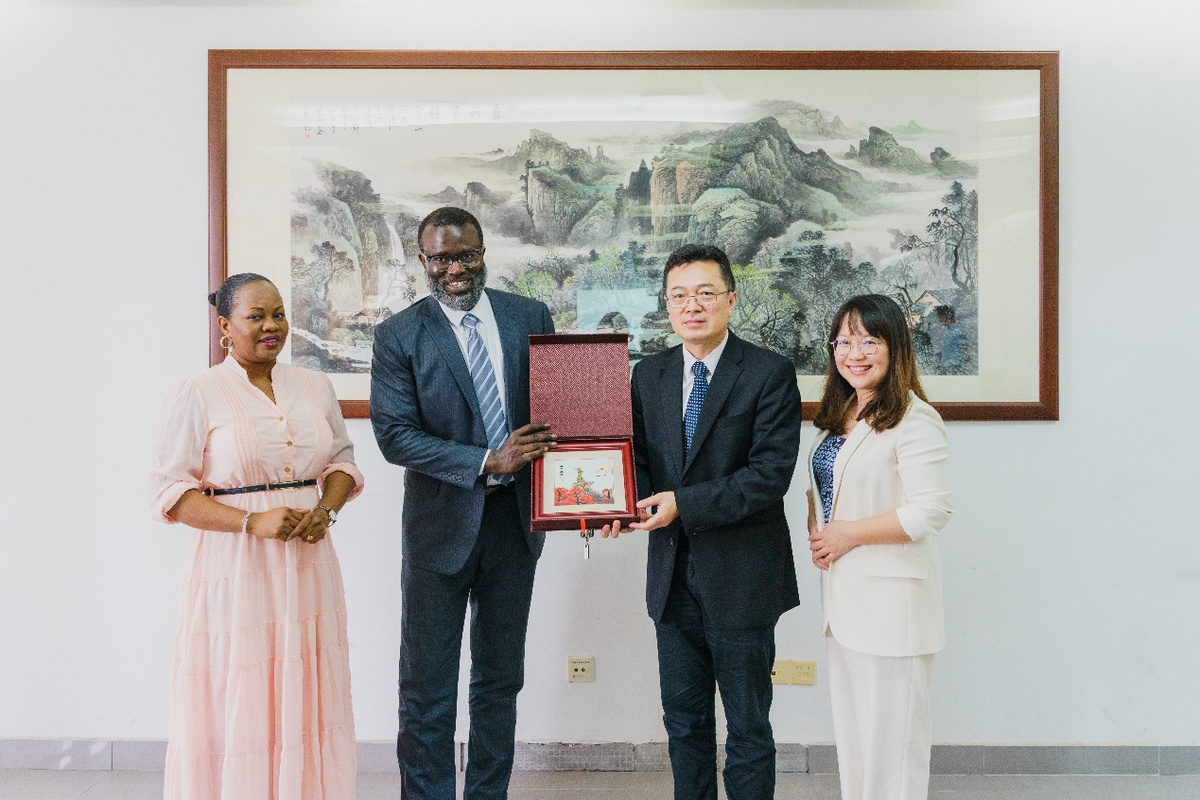 5月19日上午,环亚手机版登录入口迎来了由塞内加尔共和国驻广州领事馆副领事Rougui Mbaye、中国投资协会海外投资联合会副秘书长马驰原、中非电商总商会主席Seye先生及秘书长OMER MOHAMMAD ALI、副秘书长MR.JM、京东智能城市(大湾区)运营中心负责人黎名夏一行组成的国际访问团。访问团重点参观了占地2万平方的创新创业学院,介绍了学校科技科研成果的转化和孵化情况。