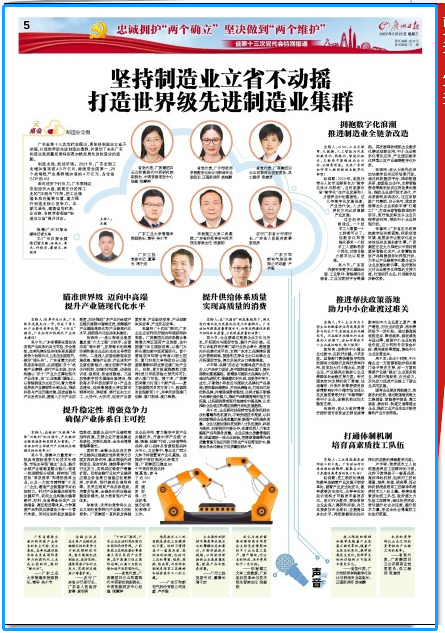 广东省第十三次党代会提出,要坚持制造业立省不动摇,打造世界级先进制造业集群,并谋划了未来广东制造业高质量发展特别是加快发展先进制造业的蓝图。