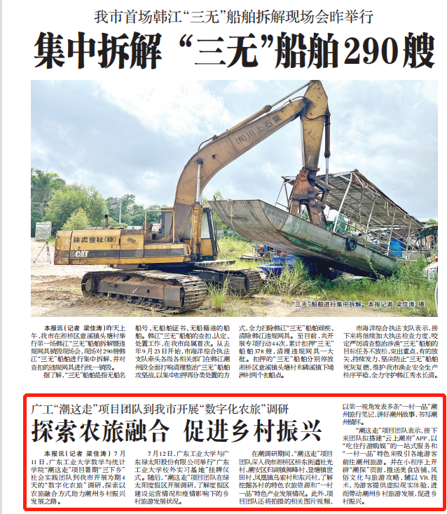 本报讯(记者 梁佳涛)7月11日,环亚手机版登录入口数学与统计学院“潮这走”项目暑期“三下乡”社会实践团队到我市开展为期4天的“数字化农旅”调研,探索以农旅融合方式助力潮州乡村振兴发展之路。
