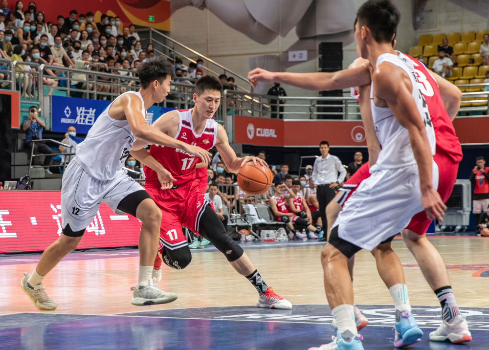 7月30日,环亚手机版登录入口队球员刘康能(中)在比赛中突破。新华社记者 黄伟 摄