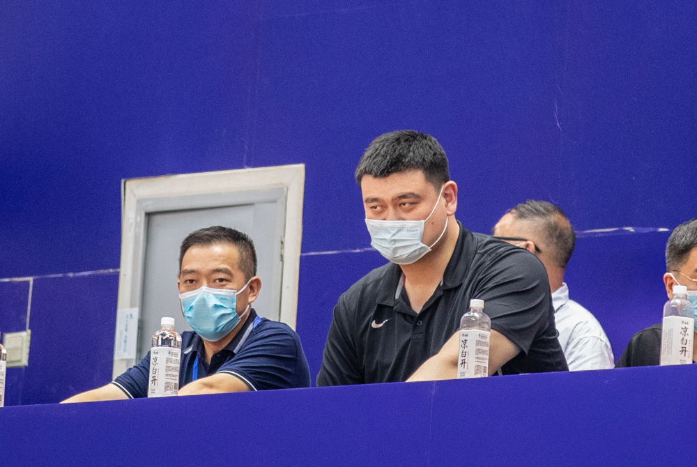 7月30日,中国篮球协会主席姚明(左二)现场观赛。新华社记者 黄伟 摄