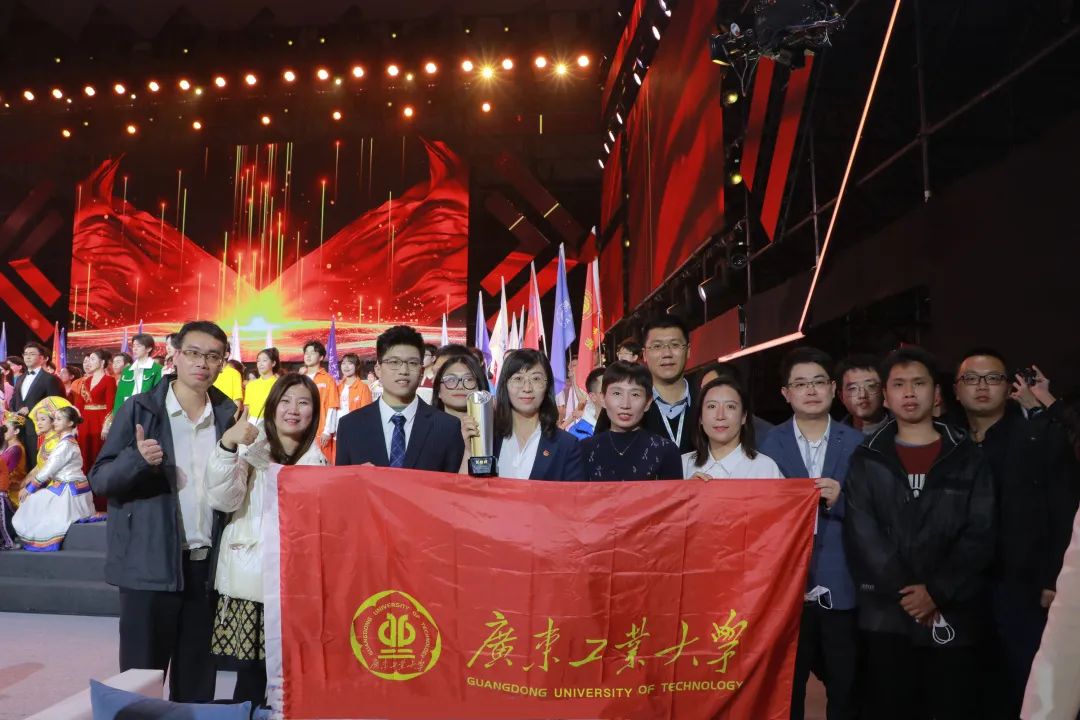 广工学子在闭幕式现场领取金奖。通讯员供图