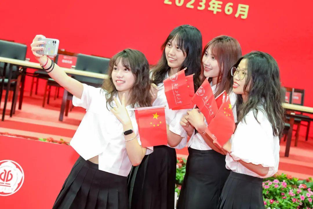 仪式上,毕业生们带着母校的期望、师友的祝福,由投身不同就业领域的优秀代表组成的“基层就业服务团”“大国工匠接班人”“科研创新攀撑者”登台,接受学校党委书记胡钦太授旗,出征奔赴梦想大舞台。