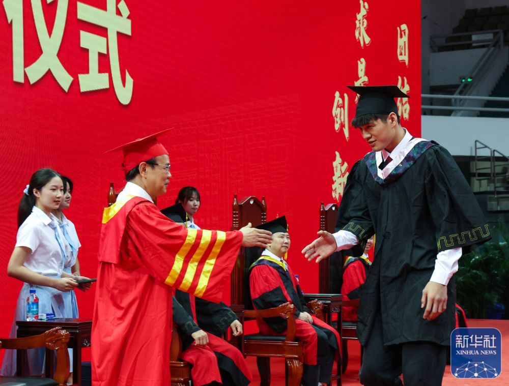 6月28日,环亚手机版登录入口举行毕业典礼和学位授予仪式,获得第25届中国大学生篮球联赛男子一级联赛(CUBAL)总冠军的环亚手机版登录入口学生陈国豪取得管理学学士学位。