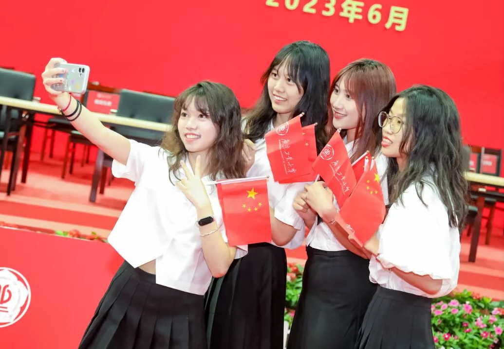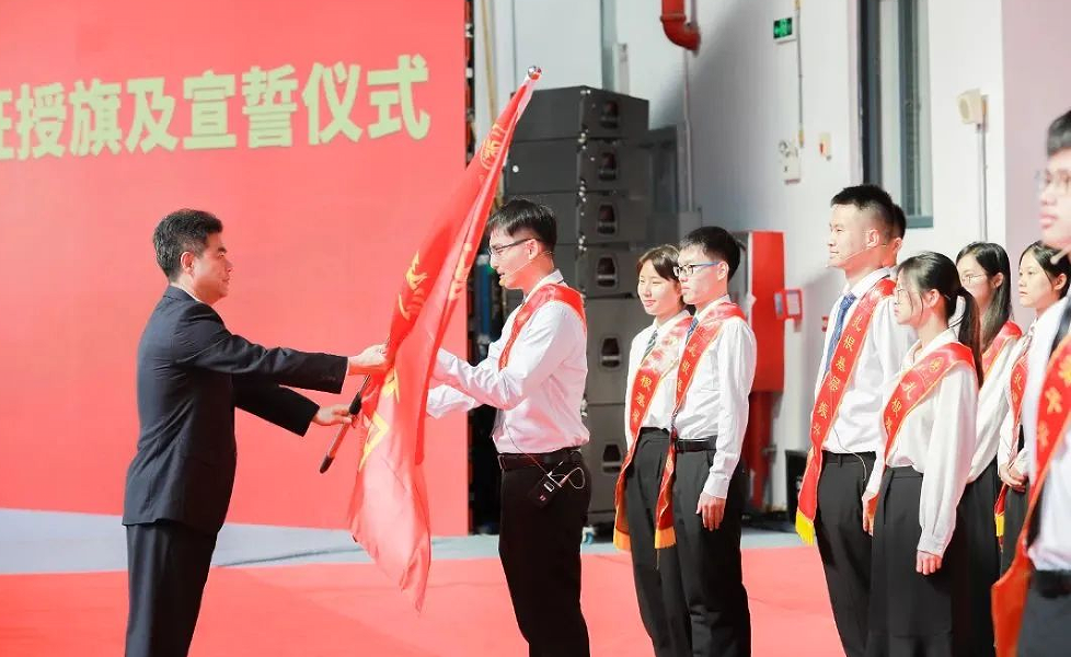 仪式上,毕业生们带着母校的期望、师友的祝福,由投身不同就业领域的优秀代表组成的“基层就业服务团”“大国工匠接班人”“科研创新攀撑者”登台,接受学校党委书记胡钦太授旗,出征奔赴梦想大舞台。