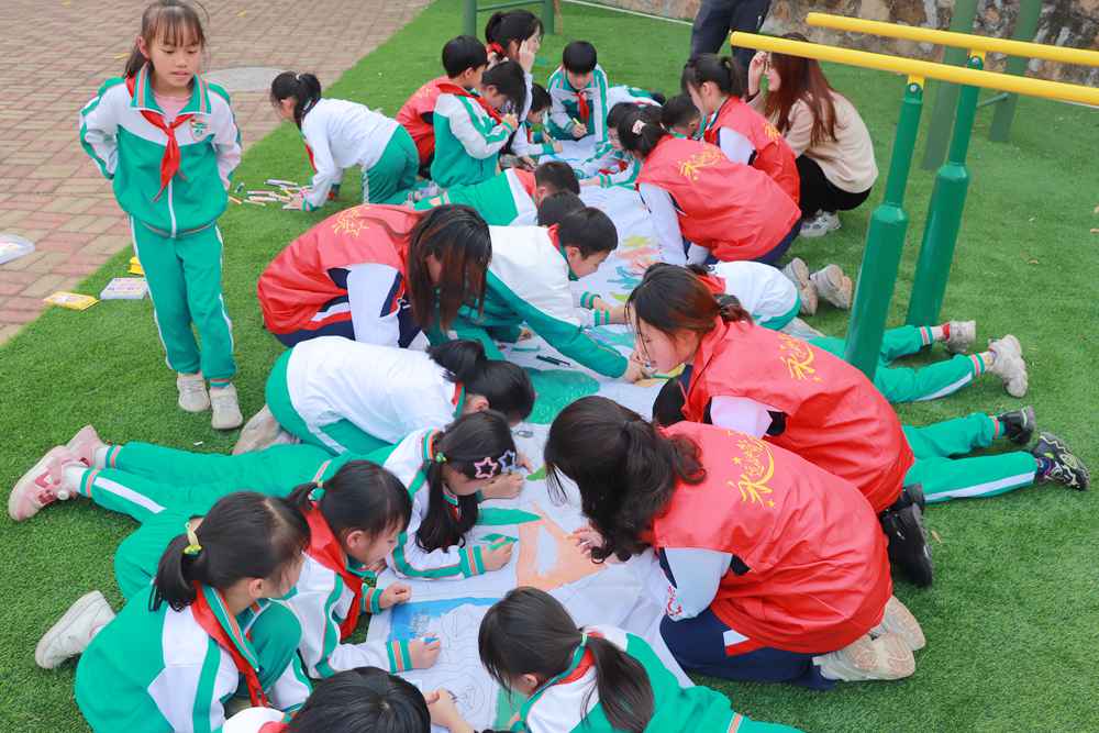 社会工作专业的同学们积极发挥专业特色,运用社会工作的理念和手法开展“把大自然保存下来”的花艺美学沙龙、“‘植’此青绿,手绘春天”主题涂鸦。小学生们撷取一抹绿色,感受着大自然的魅力,并化身为“护林小天使”,利用颜料、画笔进行涂鸦和装饰。一笔一画,一色一调中,一盆盆充满春意的植物,一幅幅精美的画布创作,注入了小学生们对绿色校园的美好期待。