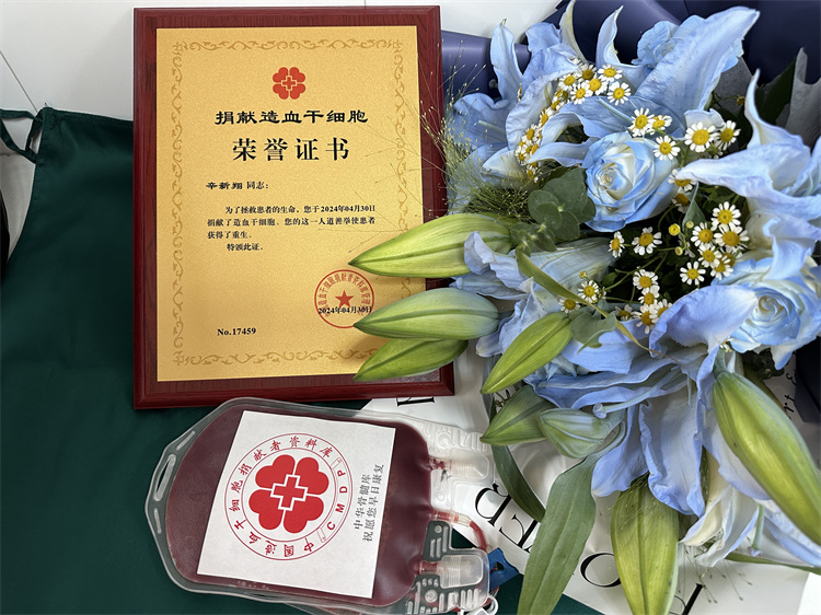 今年1月,辛新翔接到了中华骨髓库电话,告知他的造血干细胞与一位患者初配型成功,他毫不犹豫地前往广州市血液中心进行高分辨采样。确定与患者配型成功的那一刻让辛新翔感到紧张又激动。经过3个多月的准备,辛新翔入院接受了全方位的体检,并注射了4天动员剂,成功捐献了264毫升造血干细胞混悬液,成为了广东省第1958例、广州市第381例非血缘关系造血干细胞捐献者。