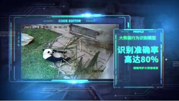 广工学生、“AI+大熊猫保护”项目组组长蓝学深介绍,项目组开发了智慧管理系统,部署了大熊猫行为智能识别模型,可识别大熊猫行为并生成日报、周报、月报、年报等,工作人员看一眼报告就能掌握大熊猫吃、喝、睡的基本情况。