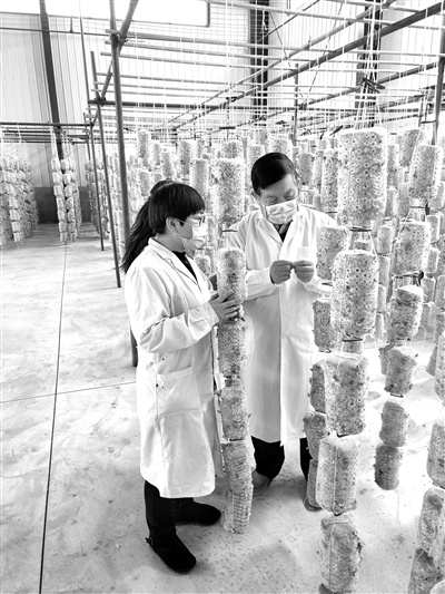 中国工程院院士、吉林农业大学教授李玉(右)和团队成员进行菌物研究。吉林农业大学供图