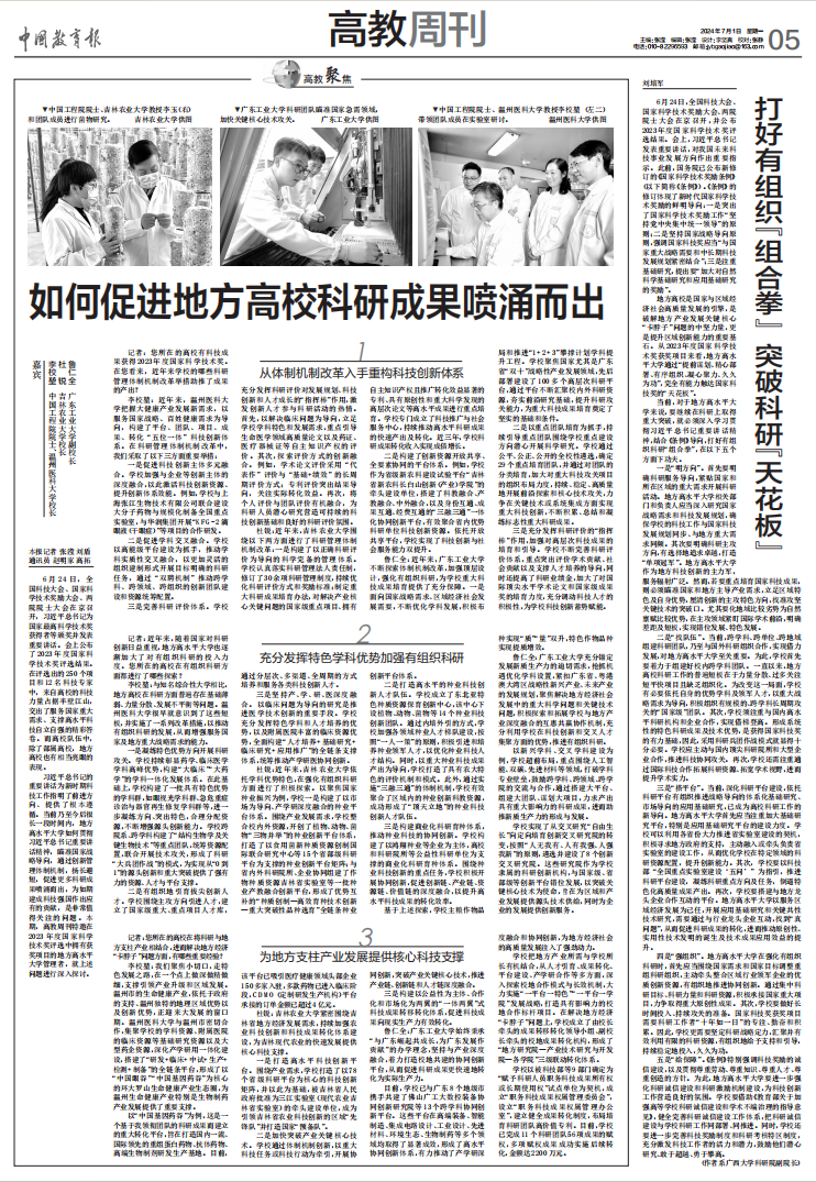 记者:您所在的高校在将科研与地方支柱产业相结合,进而解决地方经济“卡脖子”问题方面,有哪些重要经验?