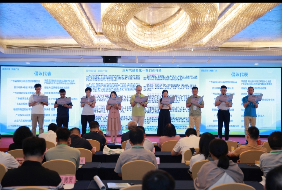 活动最后,广东省珠水云山自然保护基金会、广东省清洁生产协会、广东省环境教育促进会、广州立白企业集团有限公司、新明珠集团股份有限公司、日立电梯(中国)有限公司、广州市净水有限公司、北汽(广州)汽车有限公司、三七互娱网络科技集团股份有限公司9家单位代表共同宣读了《应对气候变化—我们在行动倡议》,号召社会各界深入践行习近平生态文明思想,共同为应对气候变化贡献力量。