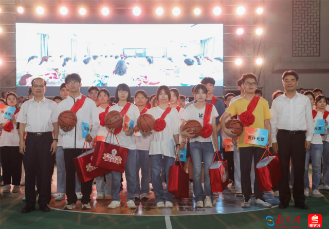 邱学青代表学校对东源县、蓝口镇为学校输送优秀学子表达感谢。他表示,近些年广工发展迅猛,各项事业呈现蓬勃向上的新态势,新生将在奋进的广工、拼搏的广工开启崭新的人生旅程。这次探望大家特别送上签名篮球,用青春、热血、独特的“见面礼”鼓励新生保持青春冲劲,矢志锐意进取,希望同学们能够传承“勇于拼搏、敢于胜利”的广工精神。