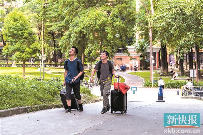 昨日的广州依旧火热,新快报记者在华工迎新现场却鲜见拖着大包小包下车的新生和家长。原来,华工今年继续为新生提供行李代收服务。新生出发前,可以将行李托运至本校区设置的集中领取点,待进校后去现场提取即可。