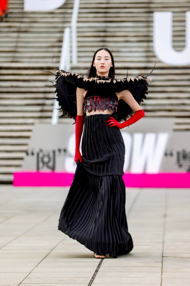“展出服装都出自‘广工设计’。”广工艺术与设计学院副院长、教授汤晓颖说,部分服装为学院时尚设计与展演系历届优秀设计作品,另一部分则是校企合作设计作品,充分展现了学院产学研深度融合的发展特色。