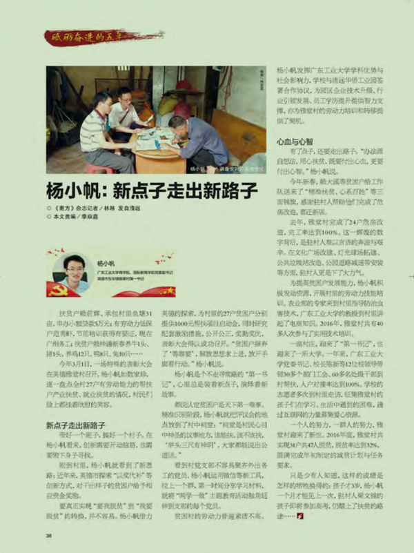 有了点子,还要走出路子。“办法源自想法,用心扶贫,既要付出心血,更要付出心智。”杨小帆说。